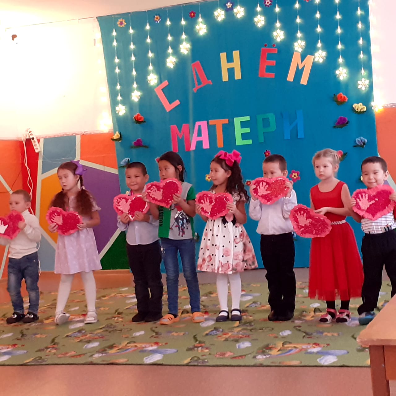 В нашем детском саду «Родничок» неделя ко Дню Матери прошла трепетно и интересно. Проведены различные мероприятия (поделки, рисование, конкурсы, танцы, концерт и чаепитие) посвященные этому дню, главной целью которых являются воспитание у дошкольников любви и уважения к матери, развитие творческих способностей детей и создание уютной, домашней атмосферы праздника. Под руководством воспитателя Борисовой П.А. все дети  готовились к этому замечательному дню: проводили беседы о близком и дорогом человеке — маме, читали художественные произведения про маму, учили замечательные песни и стихи, танцевали, рисовали портреты любимых мамочек и готовили им подарки, сочиняли рассказы о своей маме, поздравления и пожелания. День матери в нашем детском саду прошел очень трепетно и нежно.